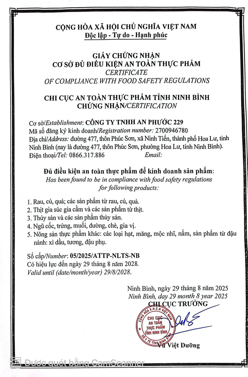 Tên đơn vị/nhà sản xuất: Công ty TNHH An Phước 229
